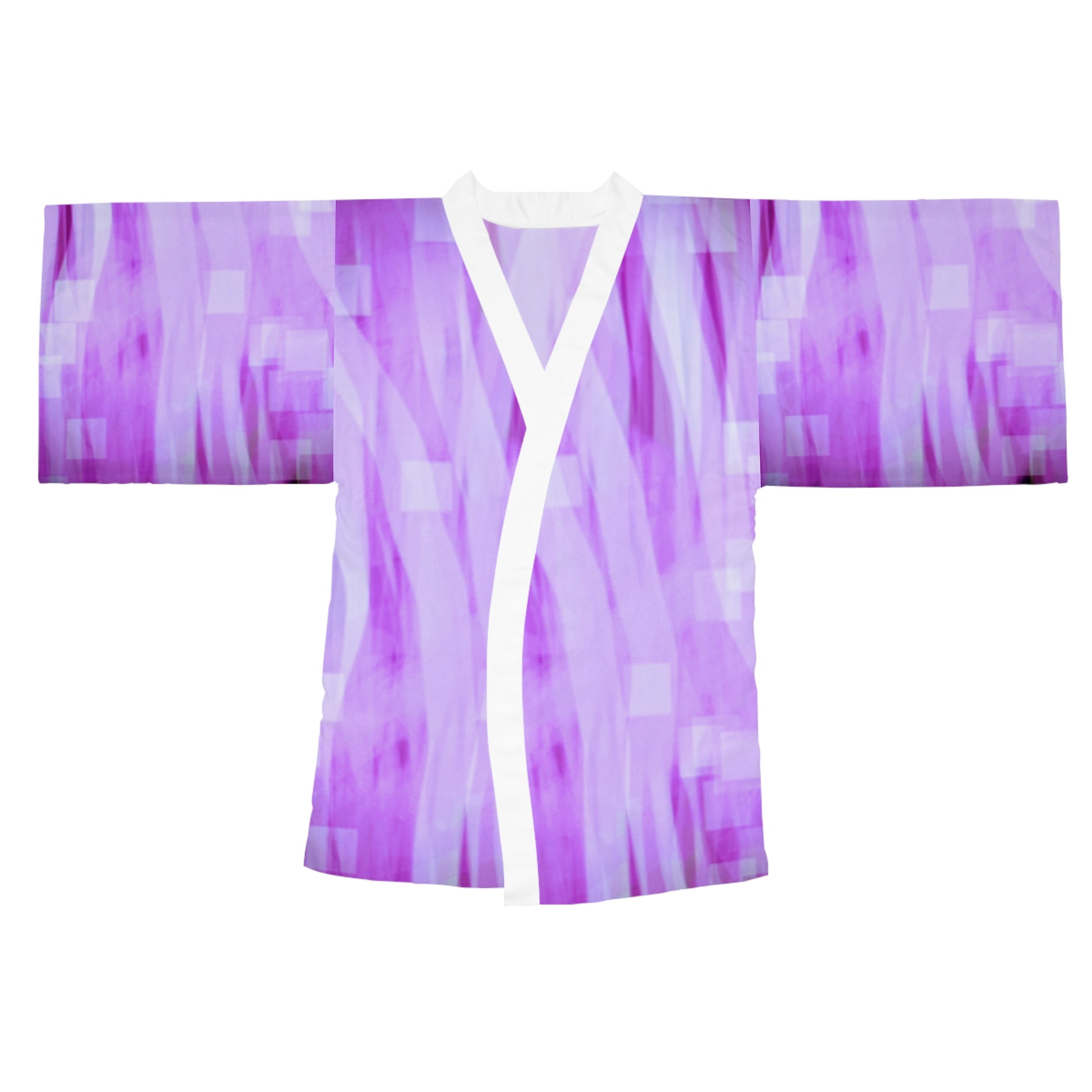 Amethyst Waves: Ethereal Purple Long Sleeve Kimono Style Robe, Boho Kimono, Cozy Lounge Wear, Unique Gift for Her, Casual Home Attire, Stylish Bathrobe