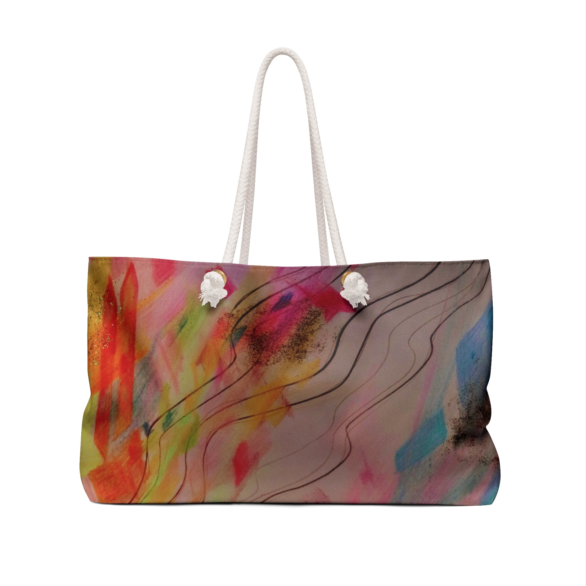 Our oversized Weekender Tote is perfect for your weekend at the beach or in town. The wide-mouthed, durable bag holds a generous amount of personal items and is easily held by its thick rope handles.