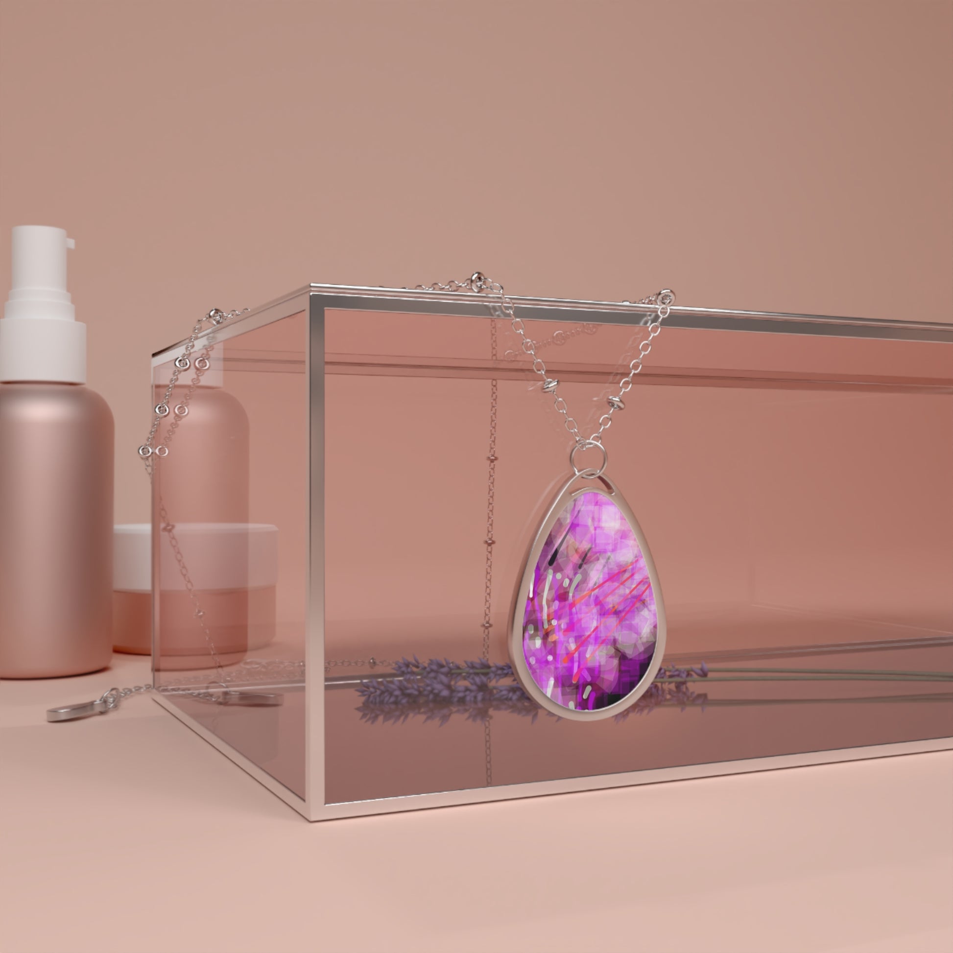 Gilda: Elegant Passion Abstract Art Oval Necklace - Beautiful Souls Inspiration