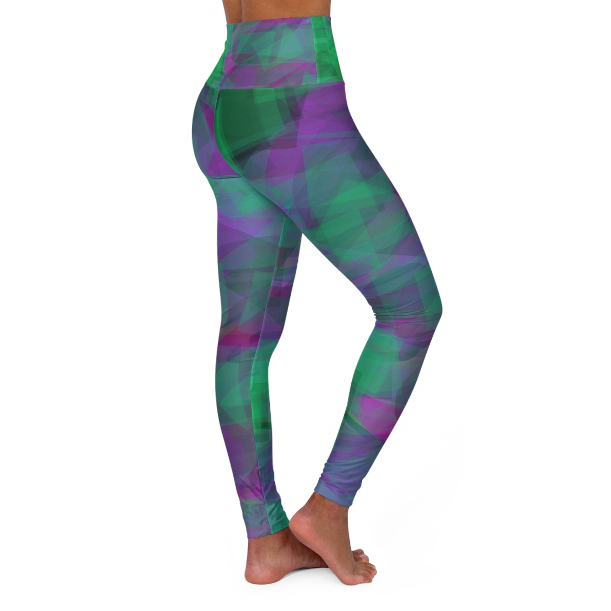 Gong: Vitality High Waisted Leggings - Abstract Green & Purple Design, Casual Chic Fashion for Active Lifestyle