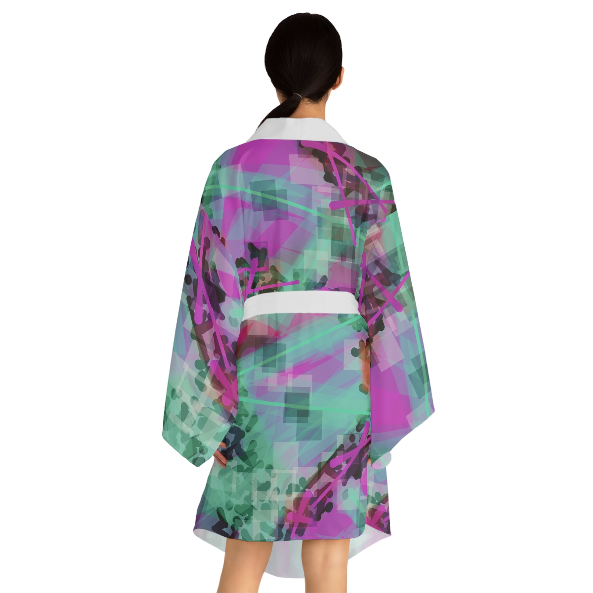 Hi Norma II: White Trim Colorful Abstract Long Sleeve Kimono Robe | Trendy Cover-Up for Relaxation