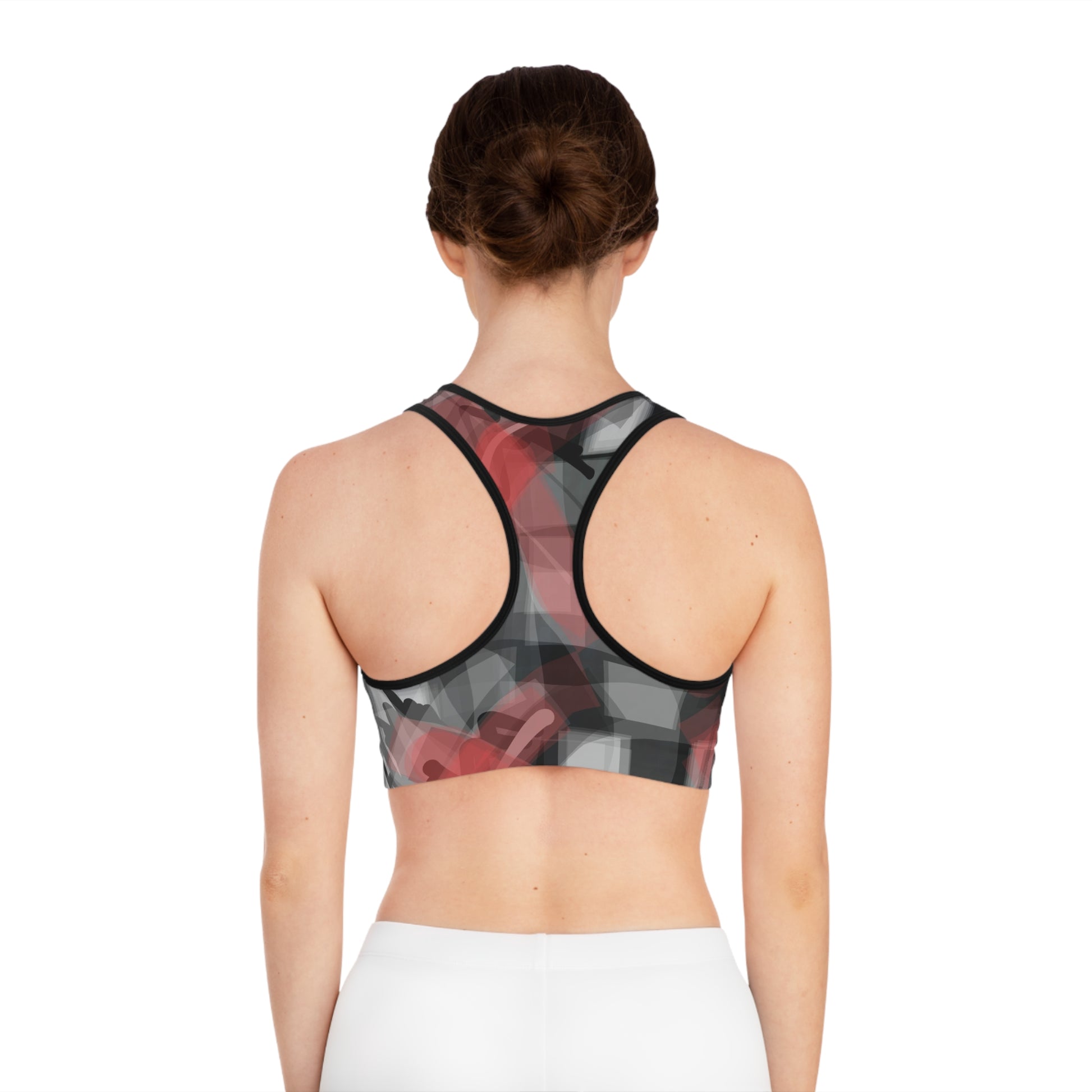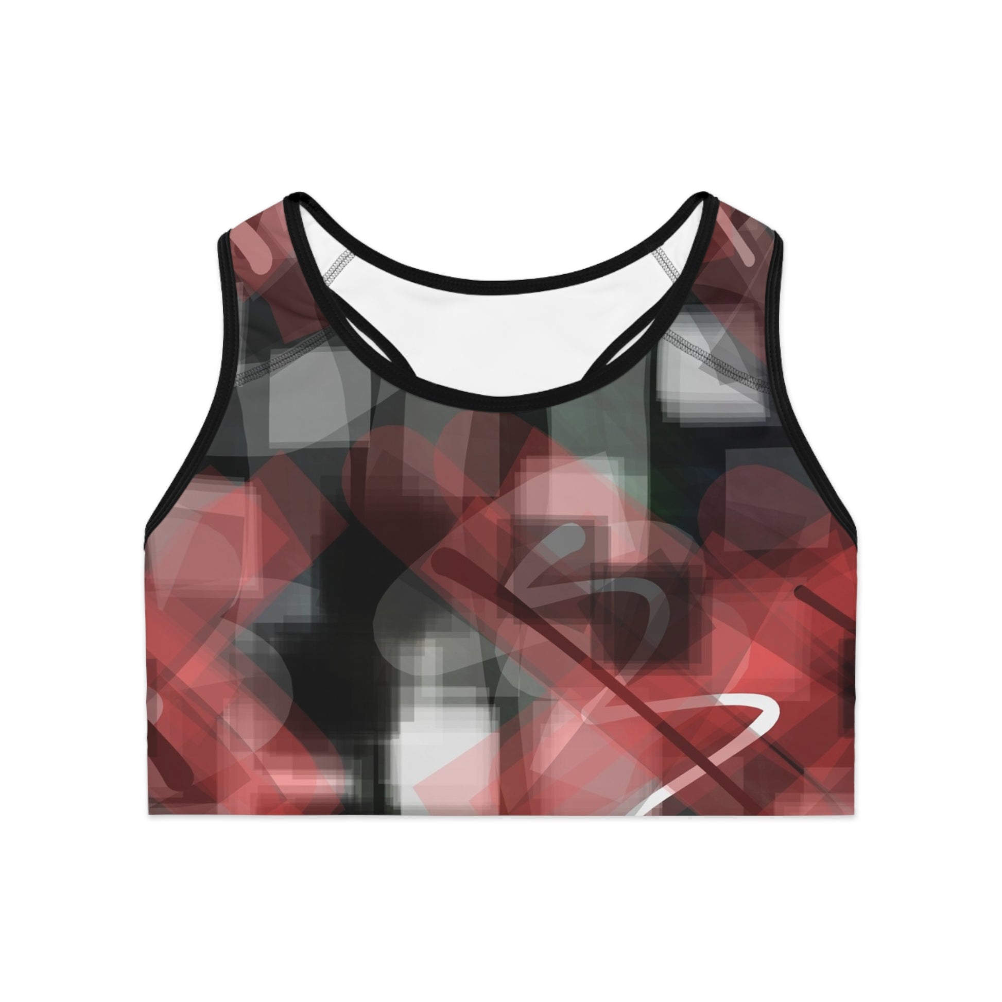 Micah II: BLK Trim Abstract Modern Sports Bra - Stylish Workout Top for Fitness Enthusiasts